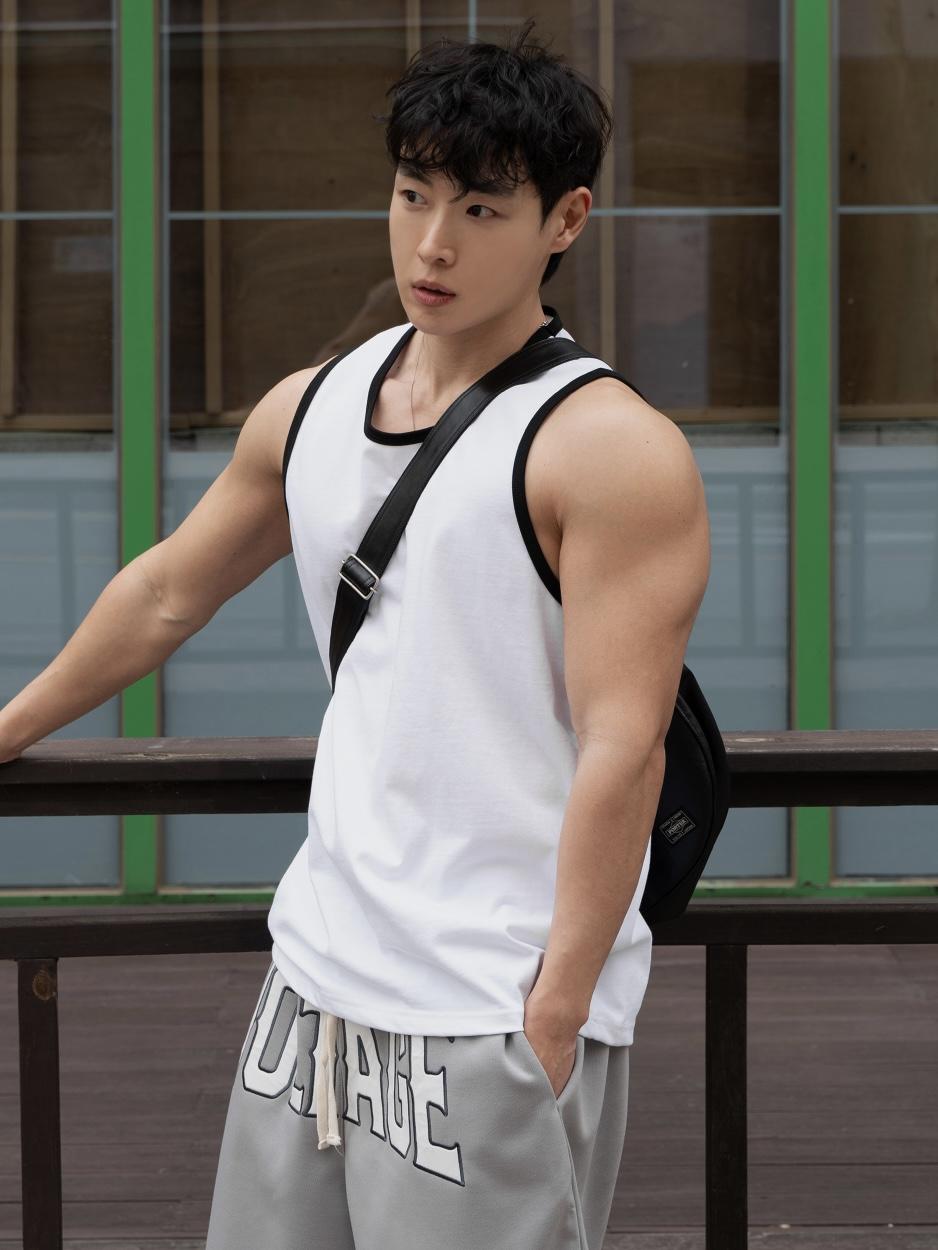 採用舒服棉質和聚酯纖維混紡製成,邊線打造黑白色拼接,簡約中增添差異性,非常推薦喜歡穿背心的朋友們!!