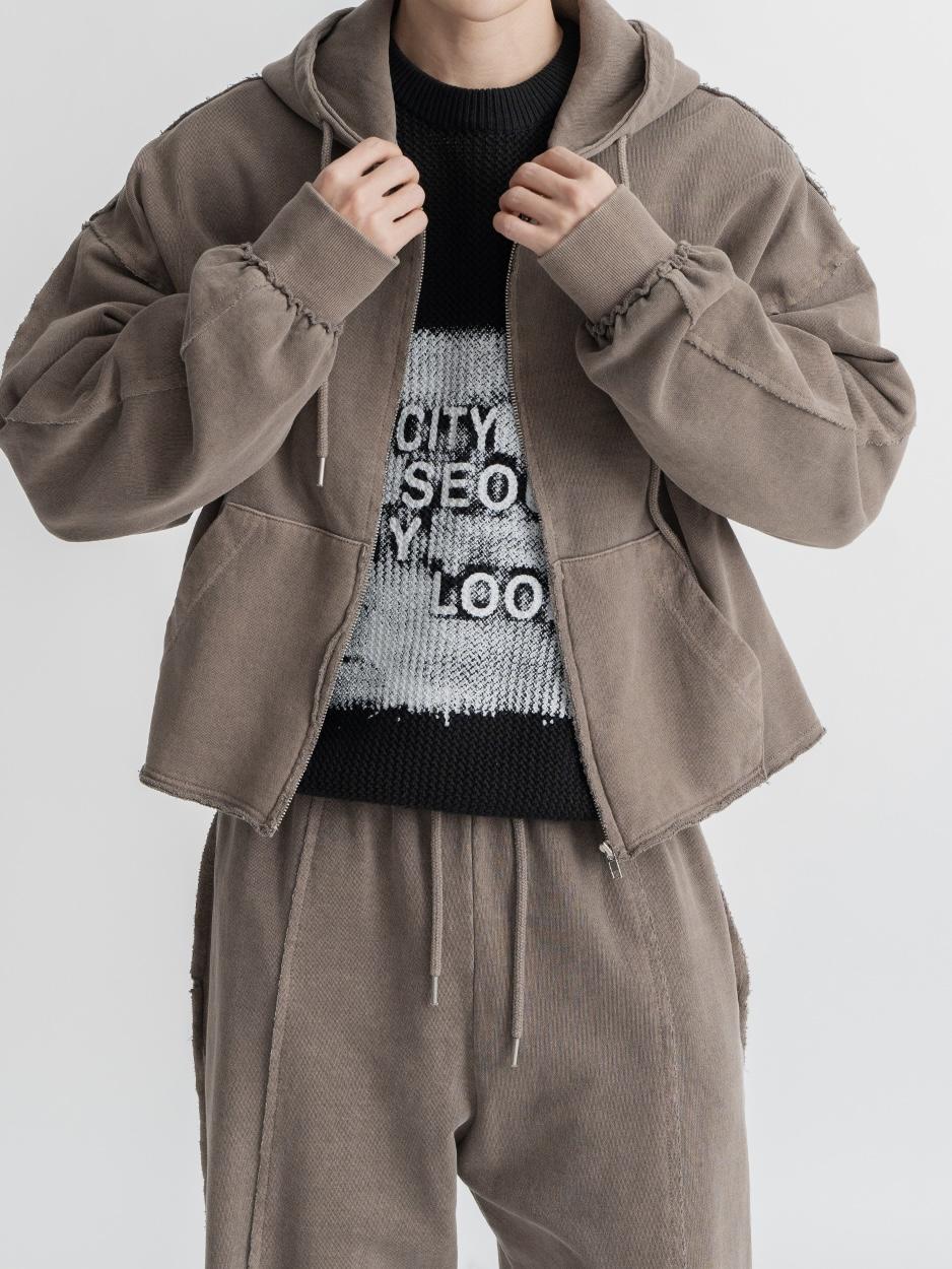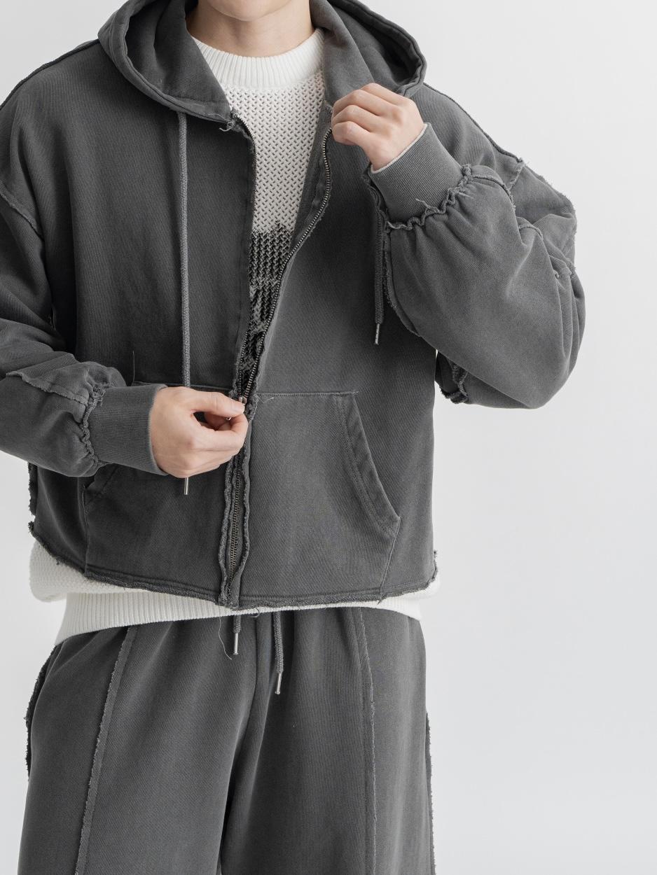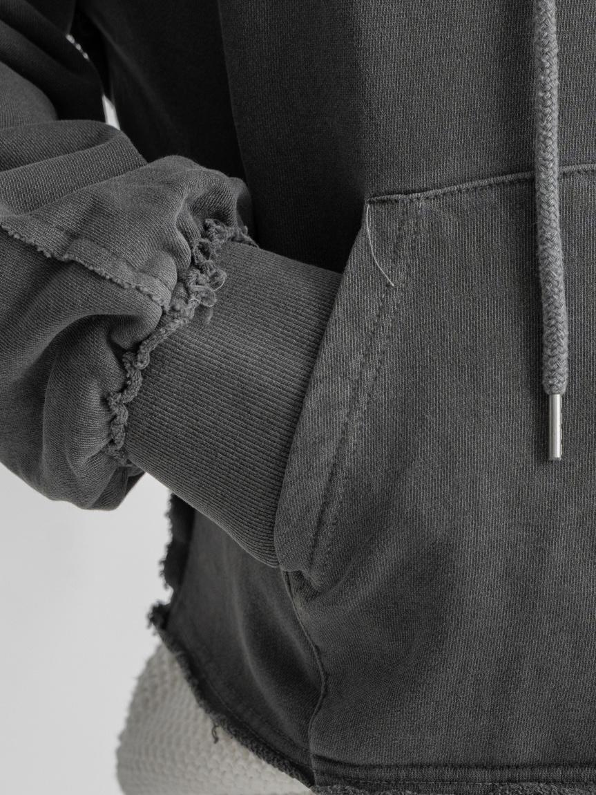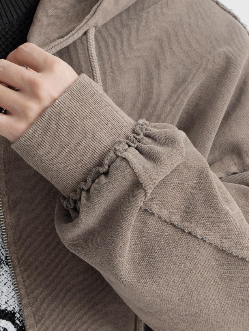 韓國🇰🇷復古水洗毛邊拼接線連帽外套『韓國連線』