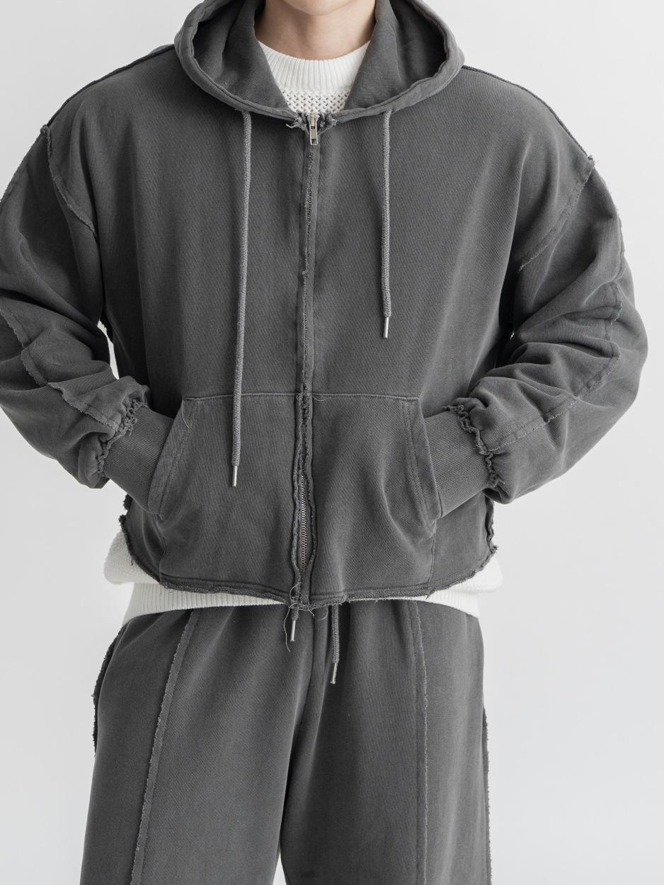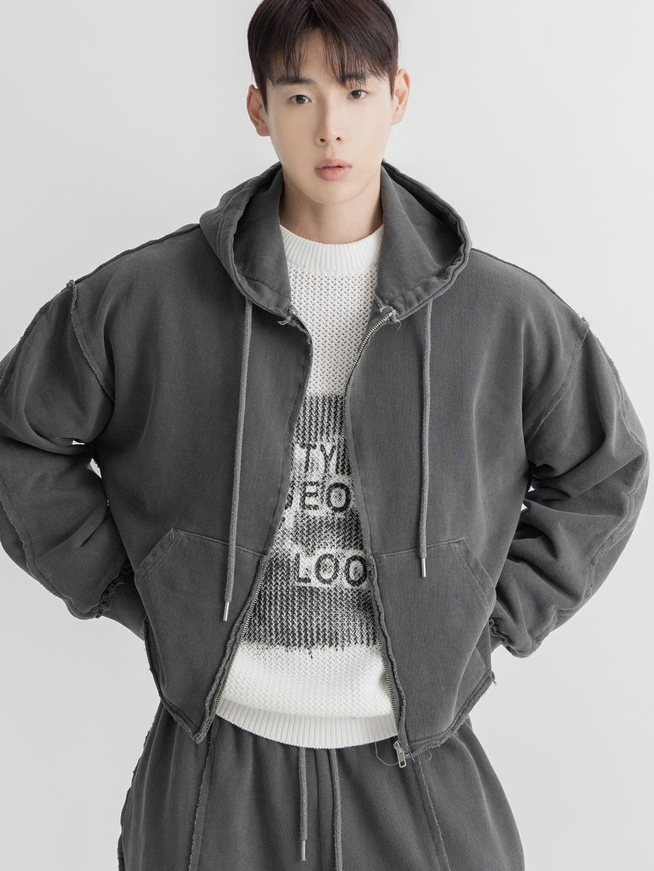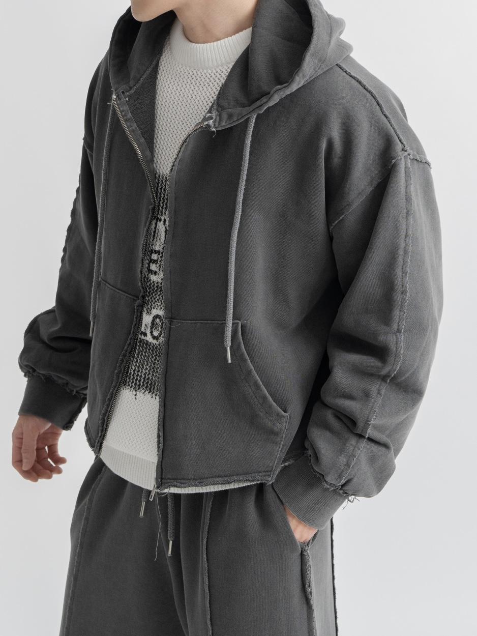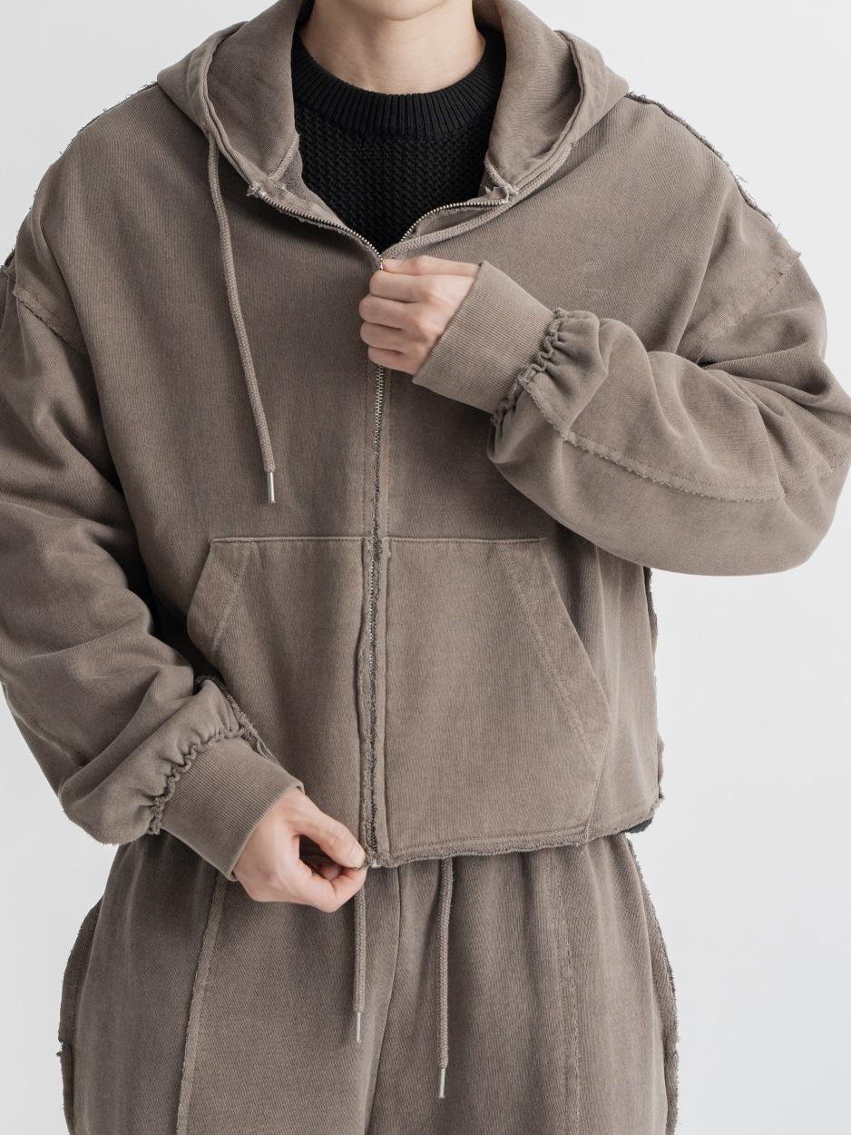 韓國🇰🇷復古水洗毛邊拼接線連帽外套『韓國連線』