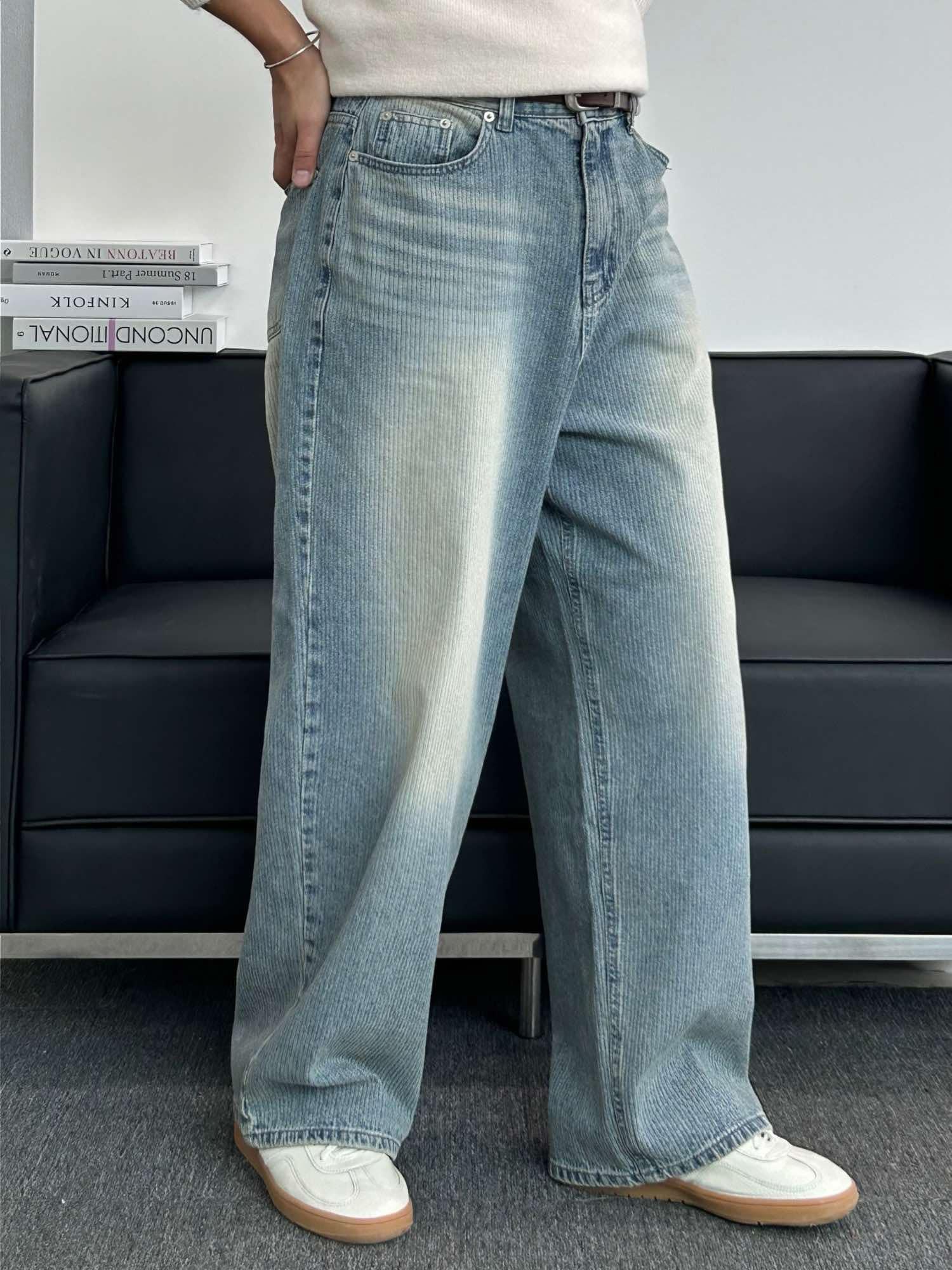 採用獨特的螺紋裁縫細節,再加上精緻的水洗面料,是非常時髦又好看的牛仔褲!!