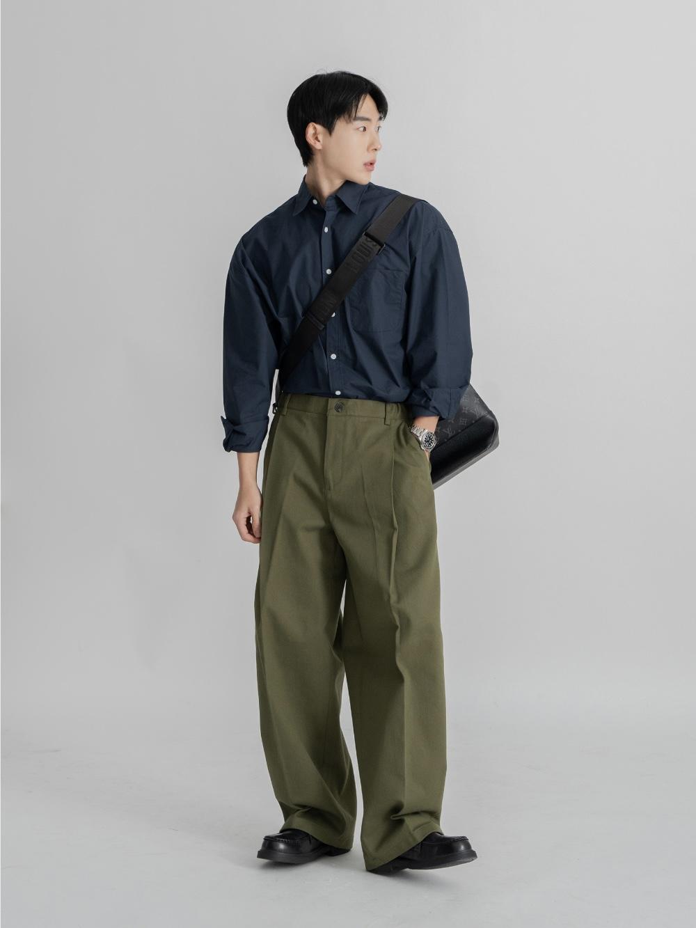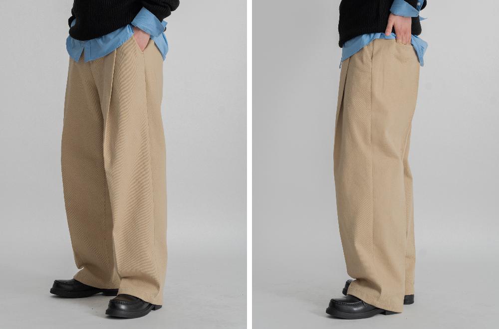 採用堅挺耐用的棉質製成,單邊摺痕細節設計,彈性鬆緊腰圍剪裁,穿上去顯腿長又好搭配的寬褲!!