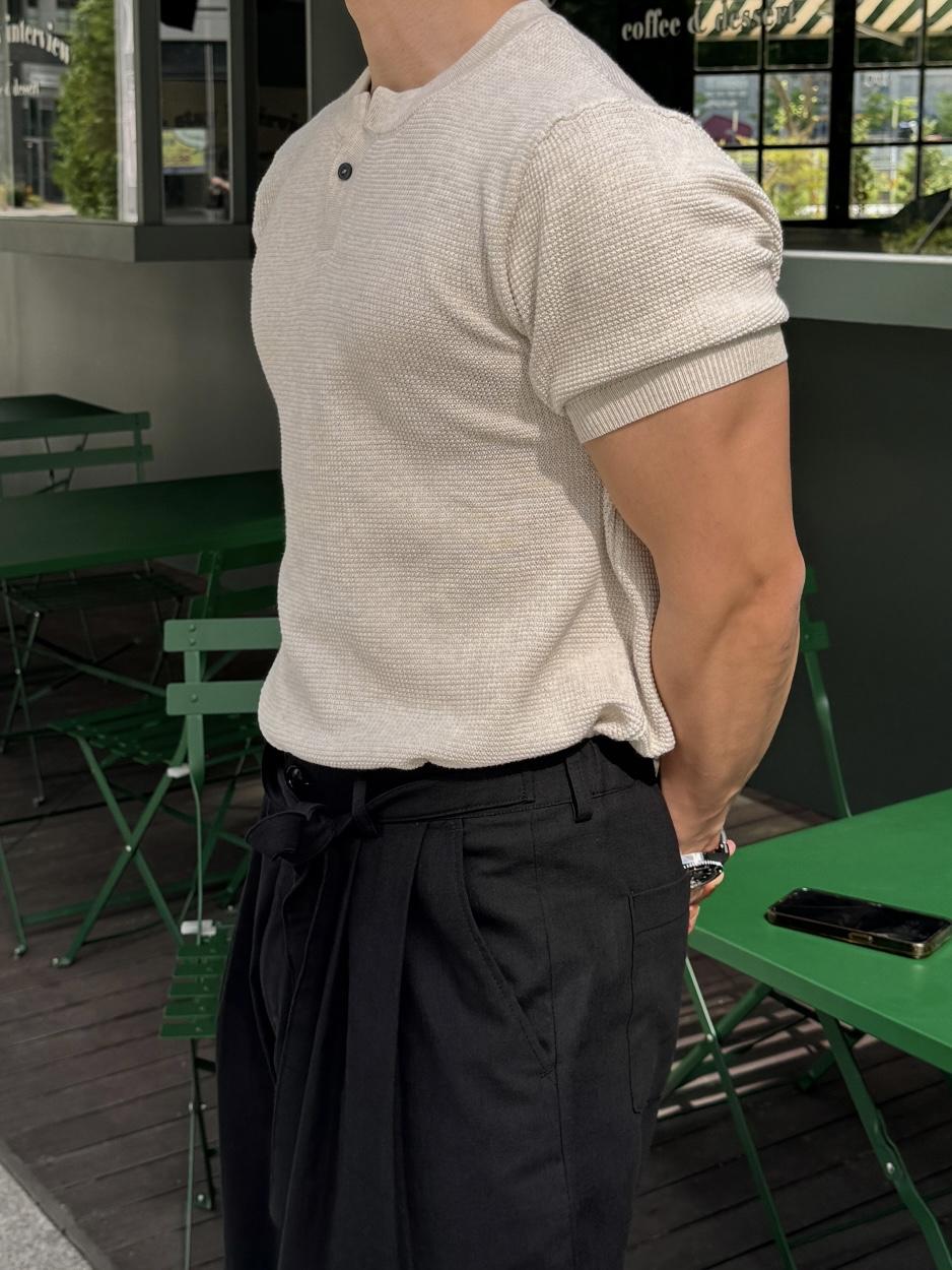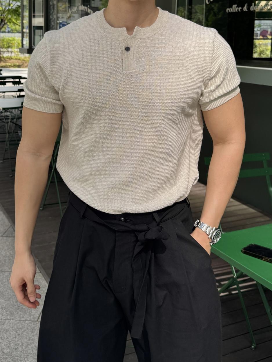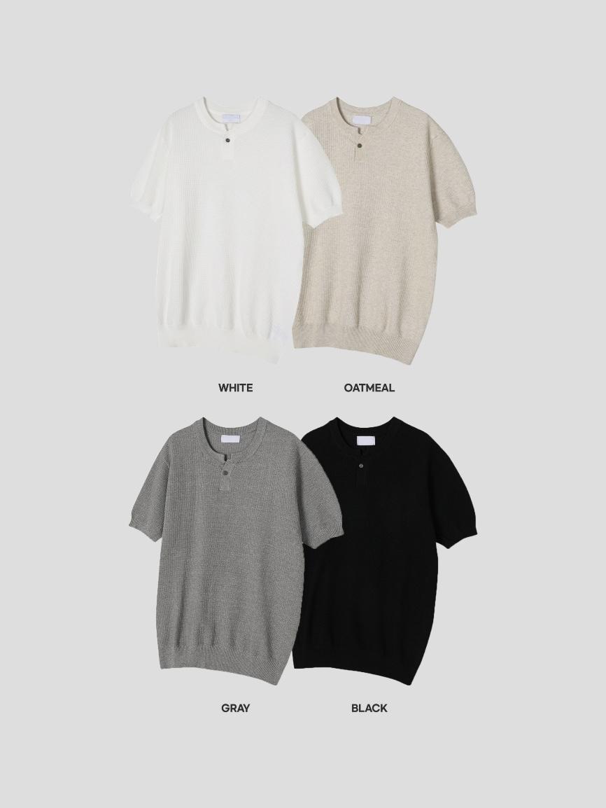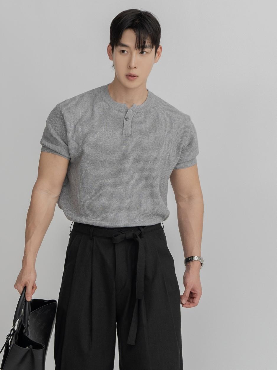 採用棉質和聚酯混紡製成,耐穿不易變形。時髦的單扣亨利領設計,加上螺紋針織細節,非常推薦給喜歡亨利領的朋友們!