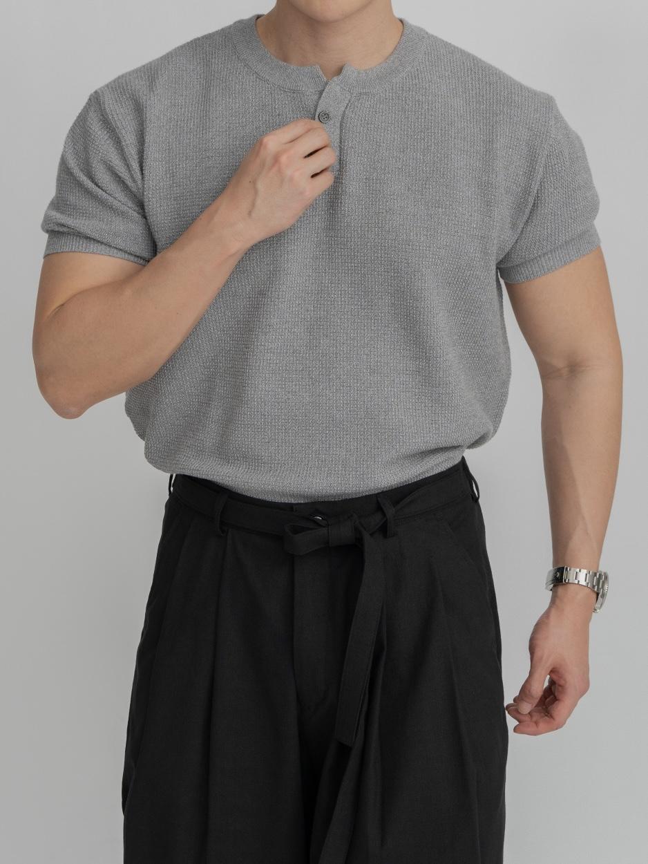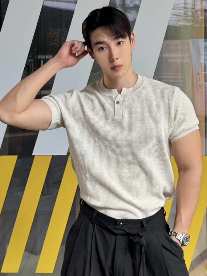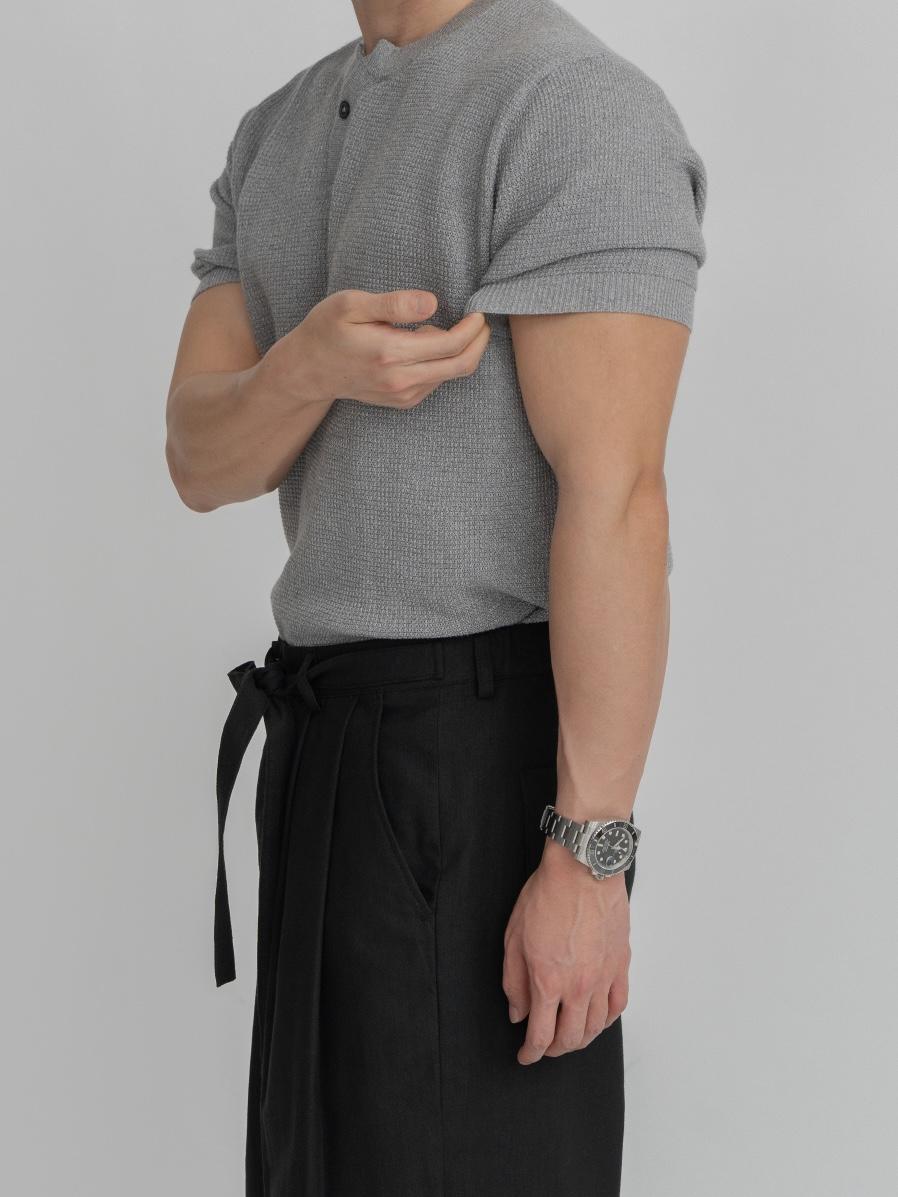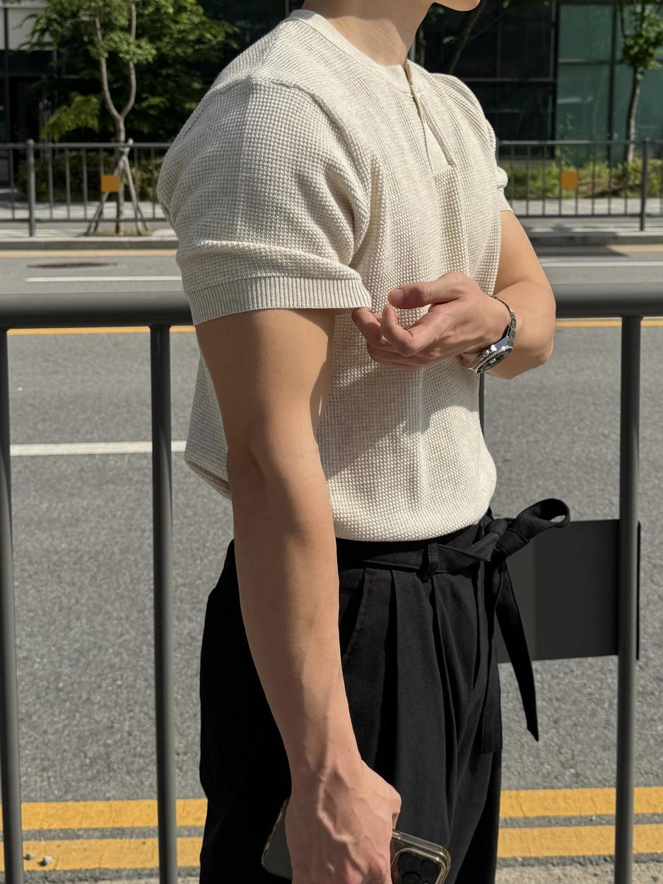 採用棉質和聚酯混紡製成,耐穿不易變形。時髦的單扣亨利領設計,加上螺紋針織細節,非常推薦給喜歡亨利領的朋友們!