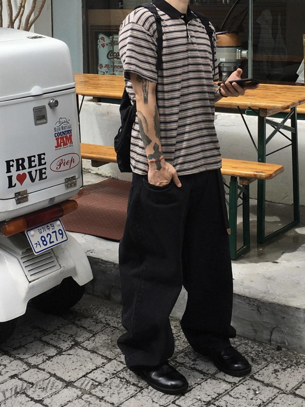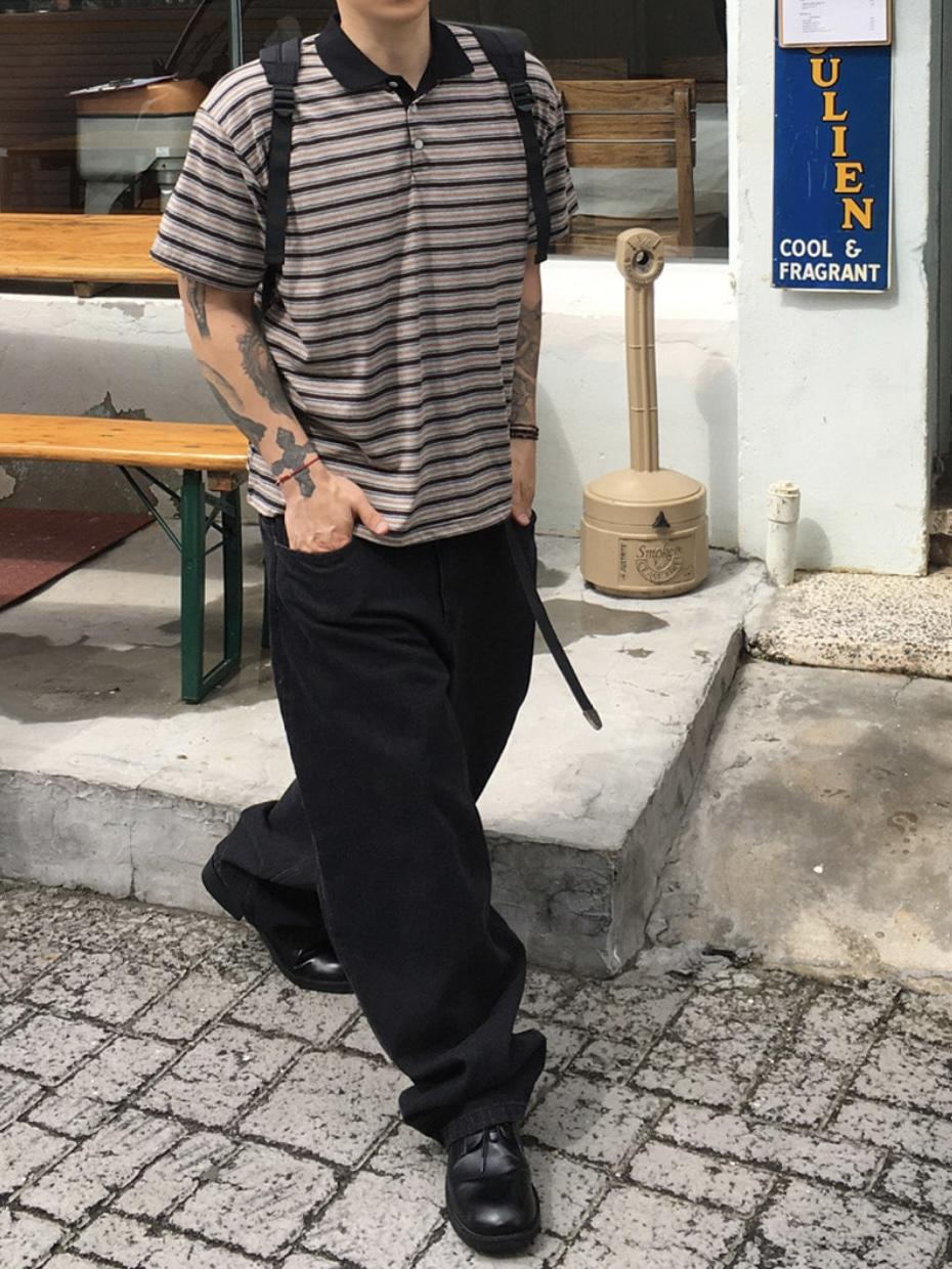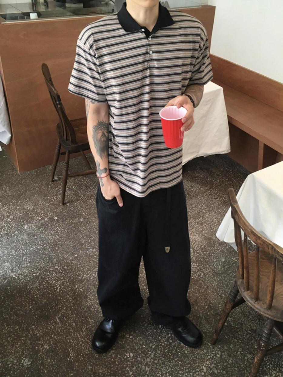 韓國🇰🇷復古線條polo領短袖『韓國連線』